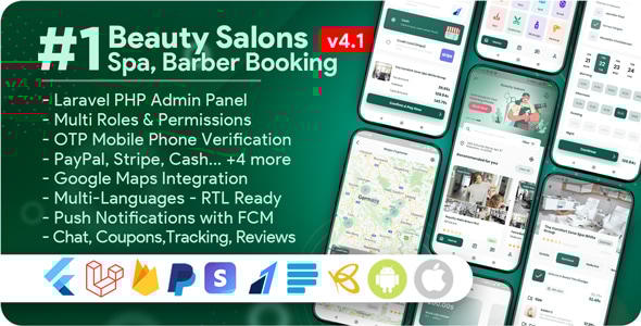Beauty Salons, Spa, Massage, Barber Booking, Business Listing Multi-Vendor App with Admin Panel v4.1.0