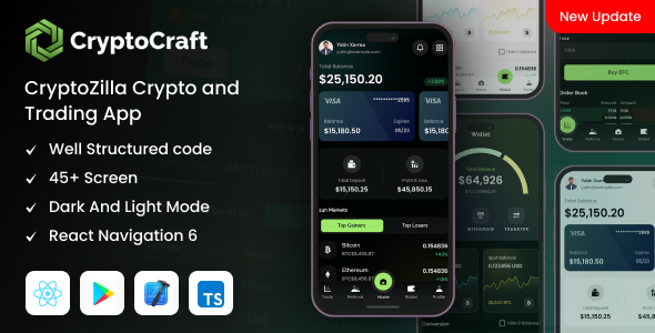 CryptoCraft v2.0 – React Native CLI Cryptocurrency Mobile App Template